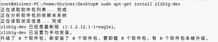 1 2 | 安装zlib依赖库: sudo apt-get install zlib1g-dev |