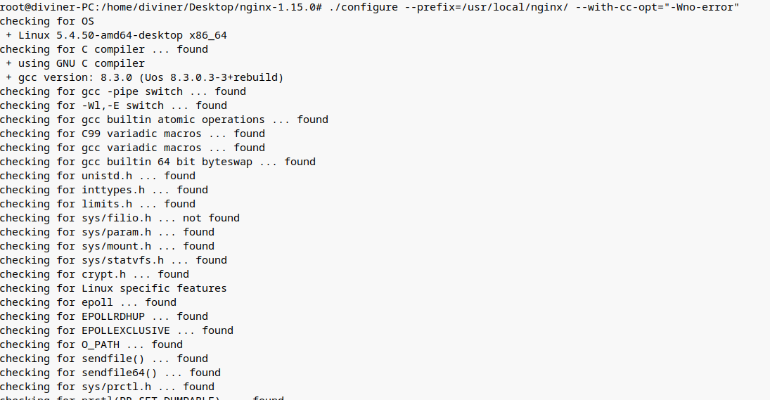 1 2 3 | ./configure设置安装路径,编译安装: ./configure --with-cc-opt="-Wno-error" --prefix=/usr/local/nginx make && make install |